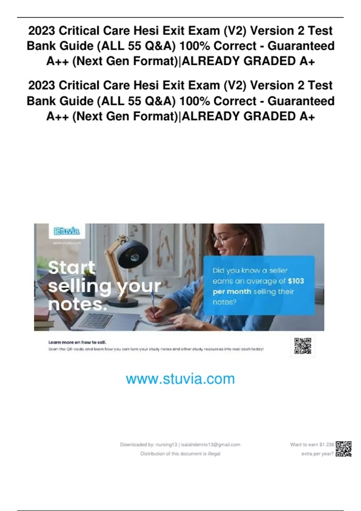 Downloaded by: nursing13 | Want to earn $1.236