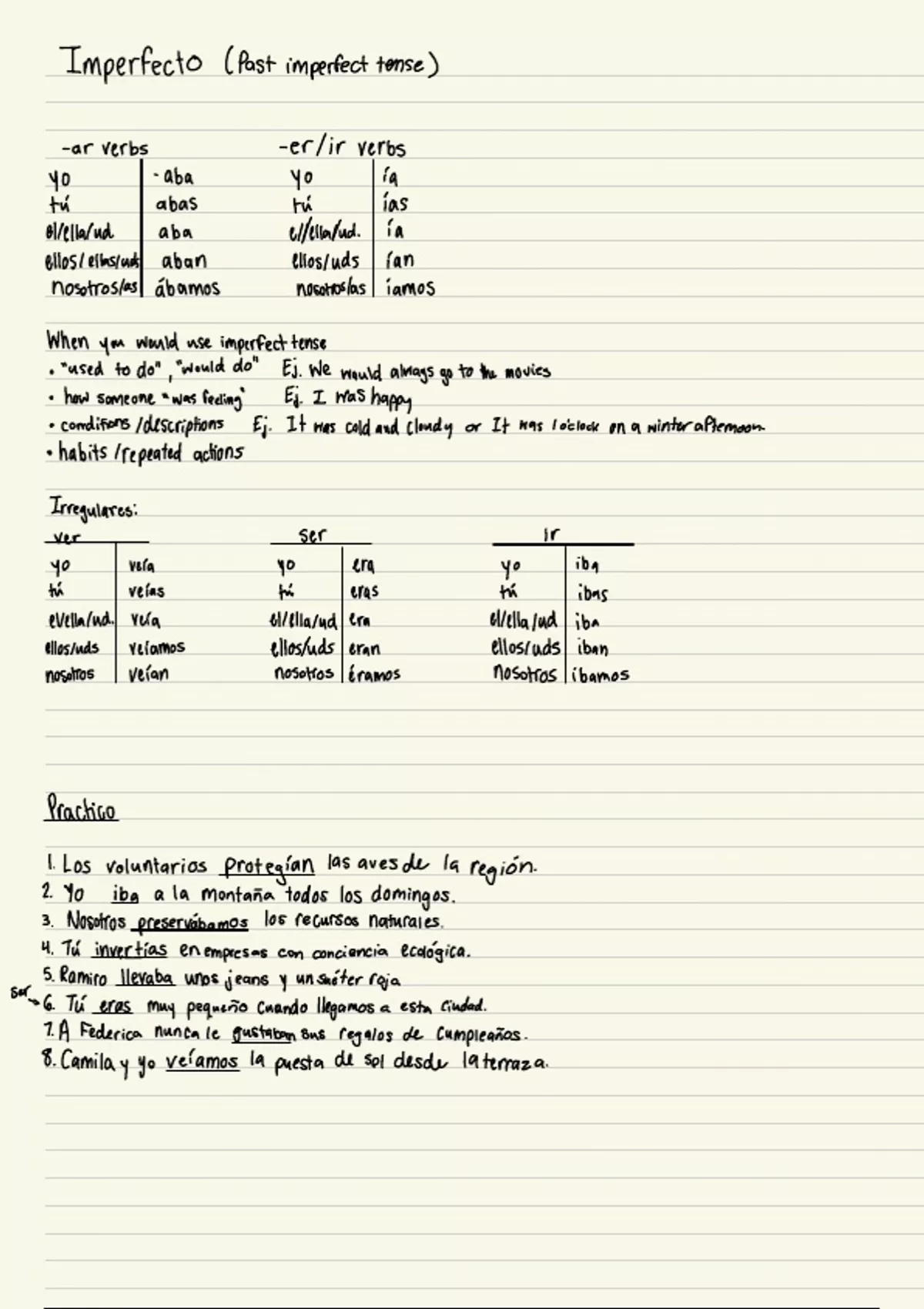 SPAN 1020 Imperfect Tense Notes. Helpful for quizzes and exams.