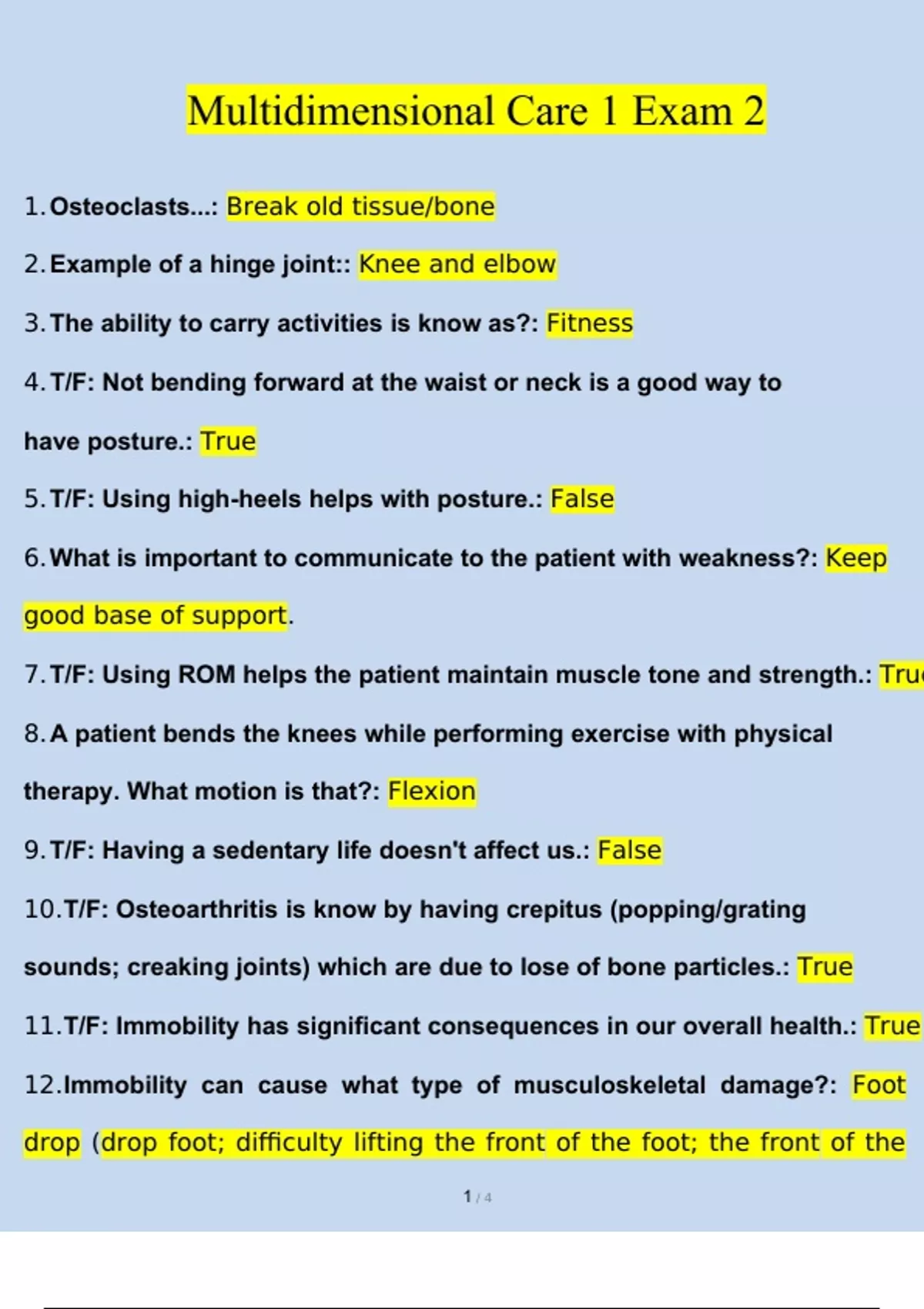 Multidimensional Care 1 Exam 2 Updated Questions and Answers (Verified Answers)