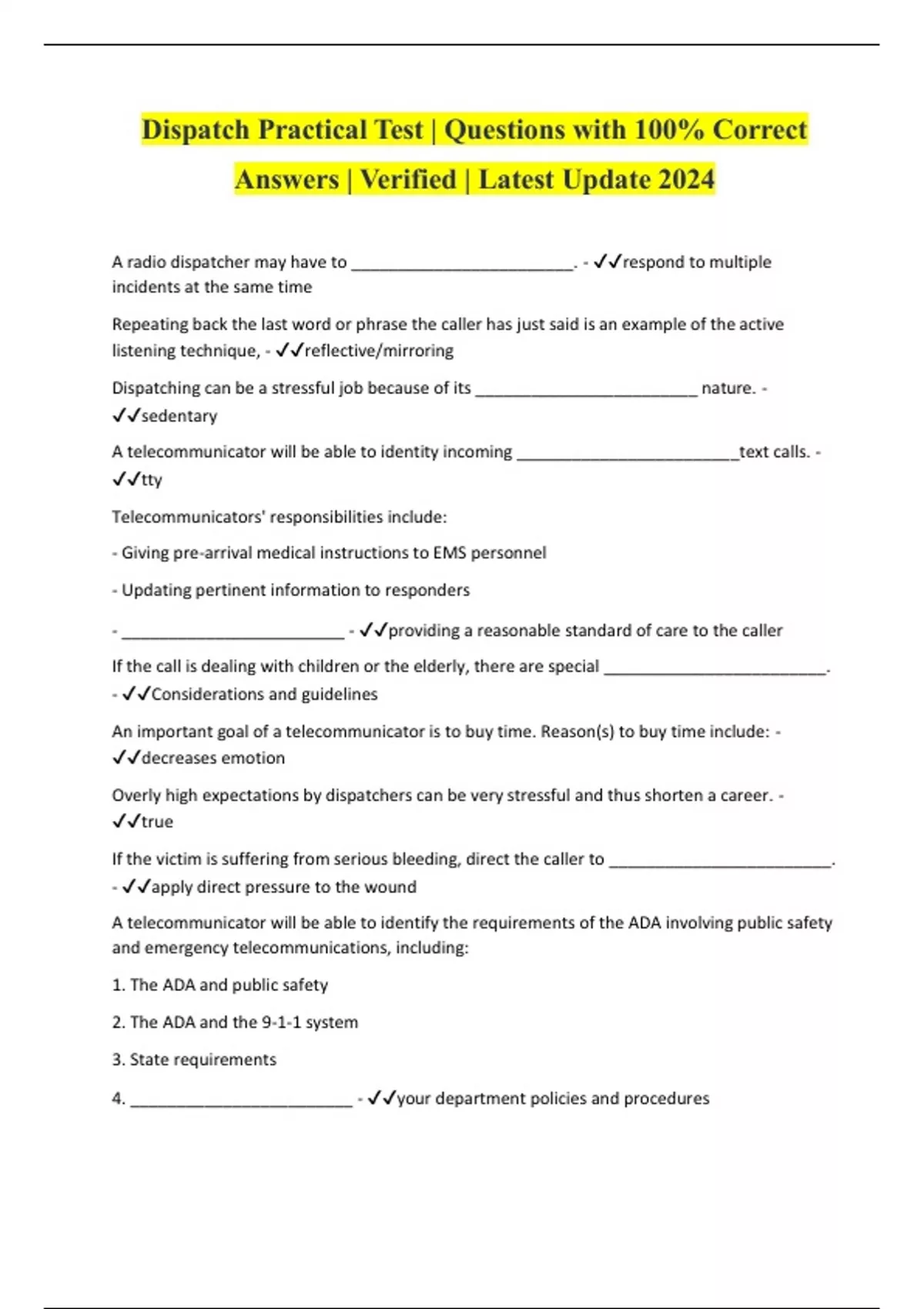 Dispatch Practical Test | Questions with 100% Correct Answers | Verified | Latest Update 2024