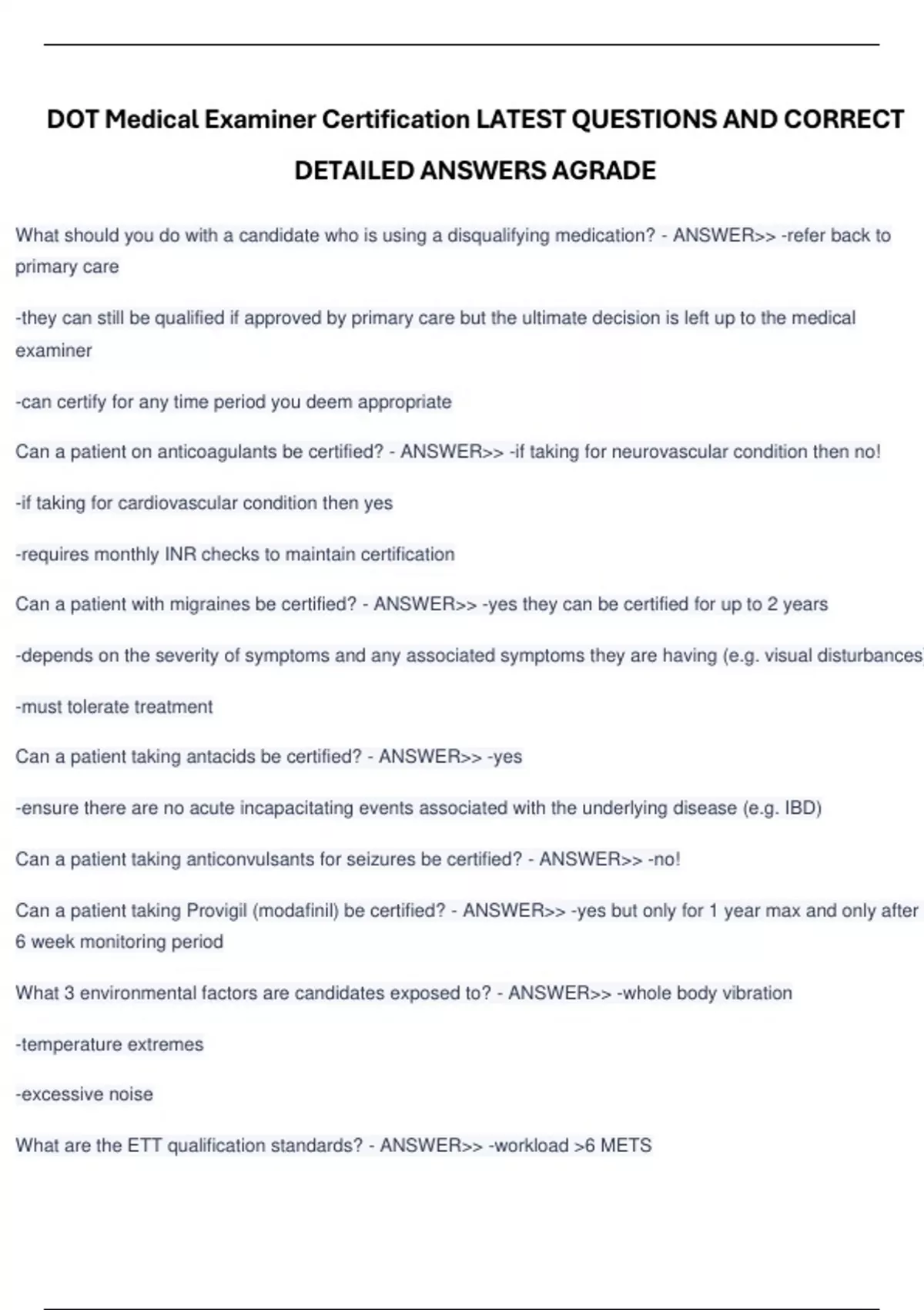 DOT Medical Examiner Certification LATEST QUESTIONS AND CORRECT DETAILED ANSWERS