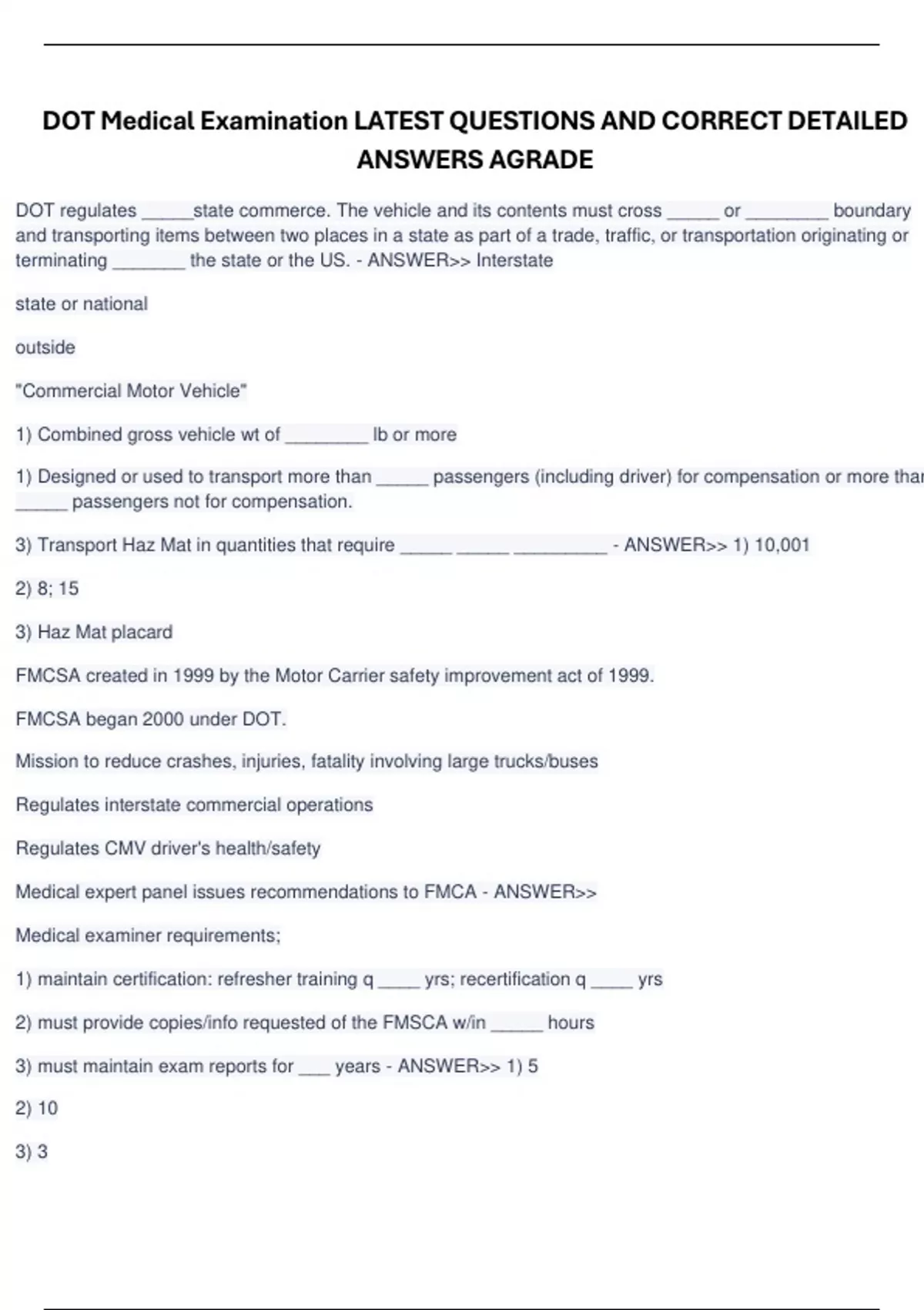 DOT Medical Examination LATEST QUESTIONS AND CORRECT DETAILED ANSWERS AGRADE