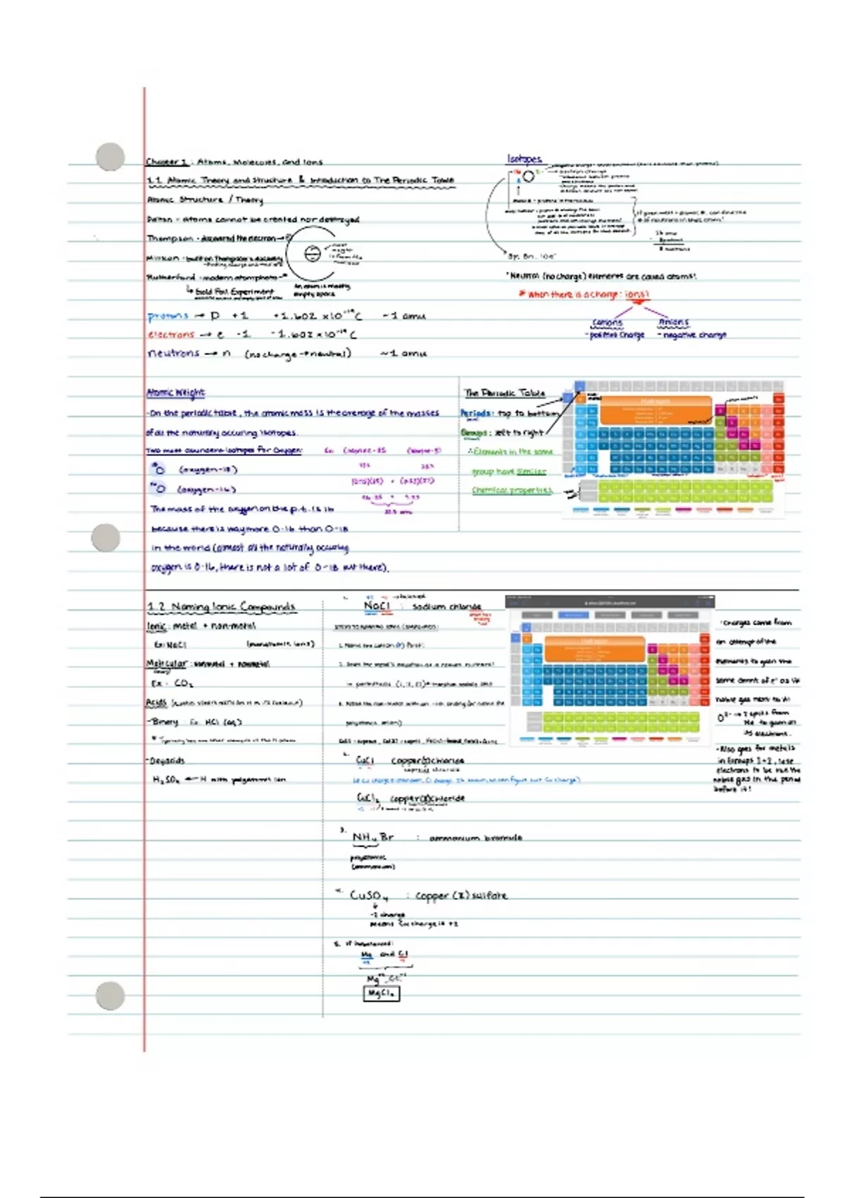 Chapter 1 covers common and popular atomic theories and the atomic structures, atomic weight, how to find mass and subatomic particle amount in any element, naming compounds, navigating the periodic table, naming acids, and using prefixes for molecular compounds.