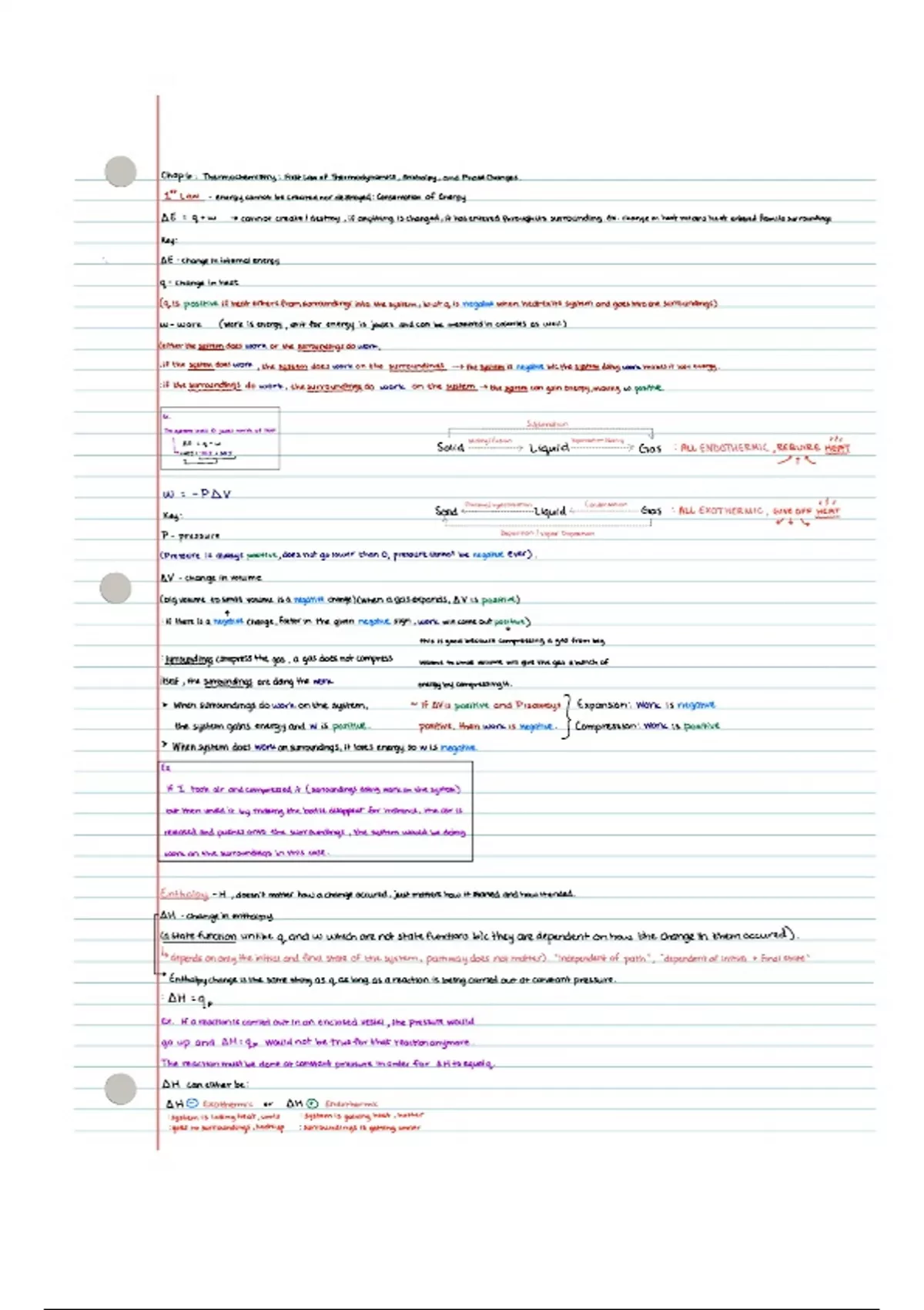 Chapter 6 covers the first law of thermodynamics and formulas, in-depth calorimetry, Hess' law explained with steps and explanations, enthalpies of formation, calculating delta H, practice problems with work and answers.