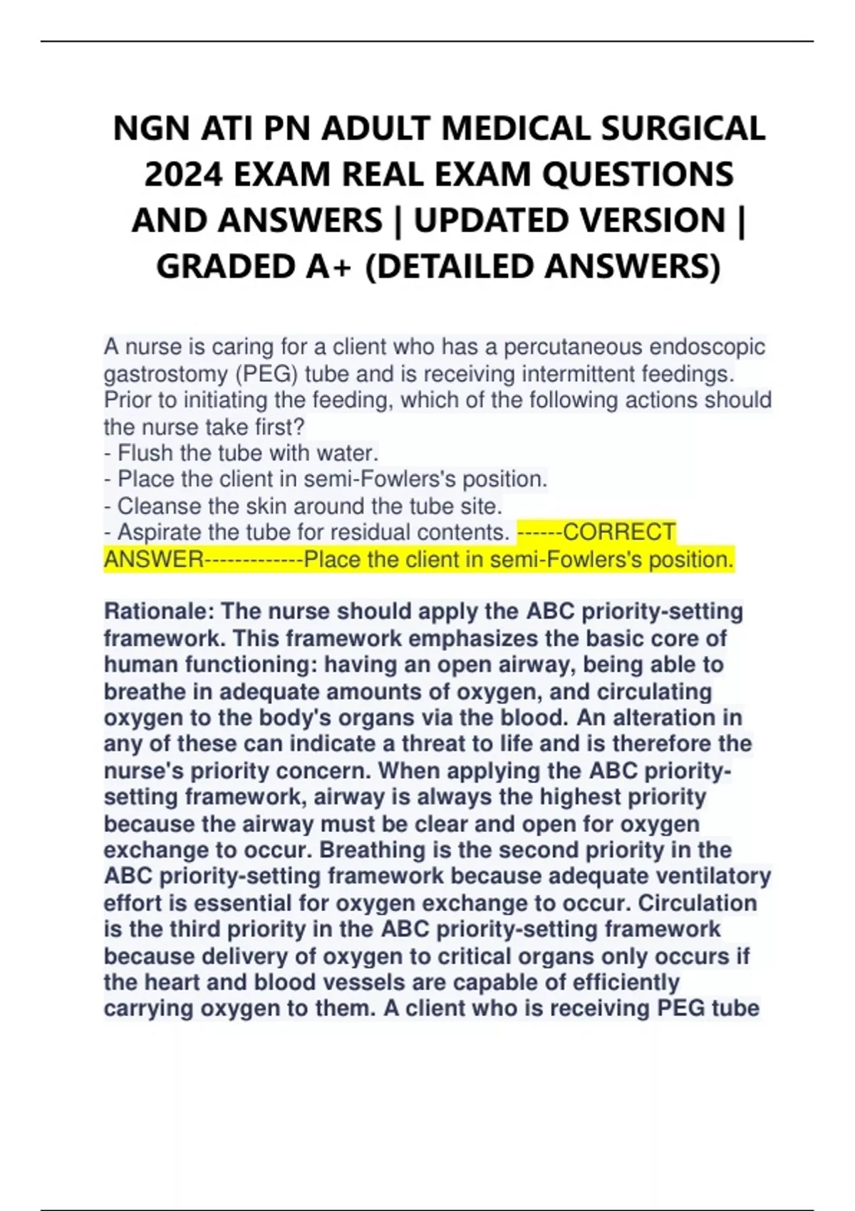 NGN ATI PN ADULT MEDICAL SURGICAL 2024 EXAM REAL EXAM QUESTIONS AND ANSWERS | UPDATED VERSION | GRADED A+ (DETAILED ANSWERS)