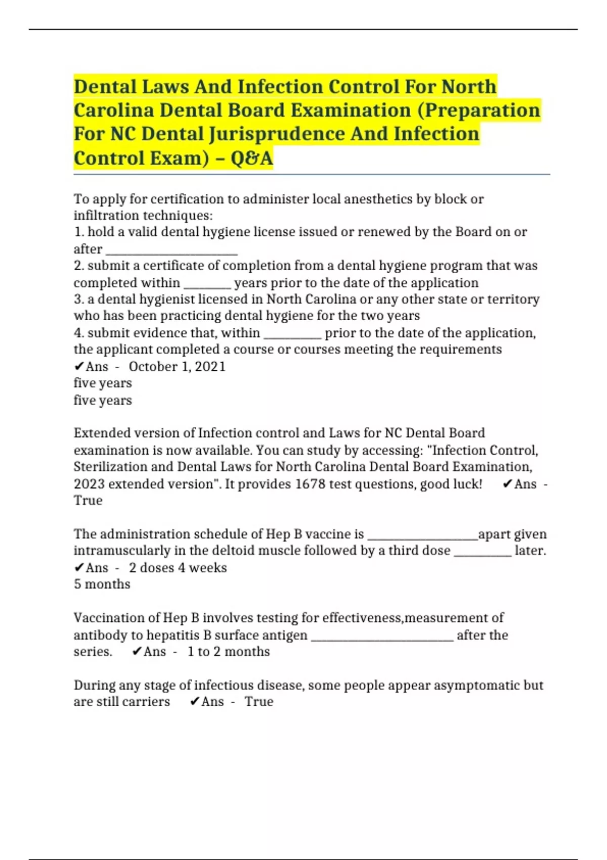 Dental Laws And Infection Control For North Carolina Dental Board Examination (Preparation For NC Dental Jurisprudence And Infection Control Exam) – Q&A