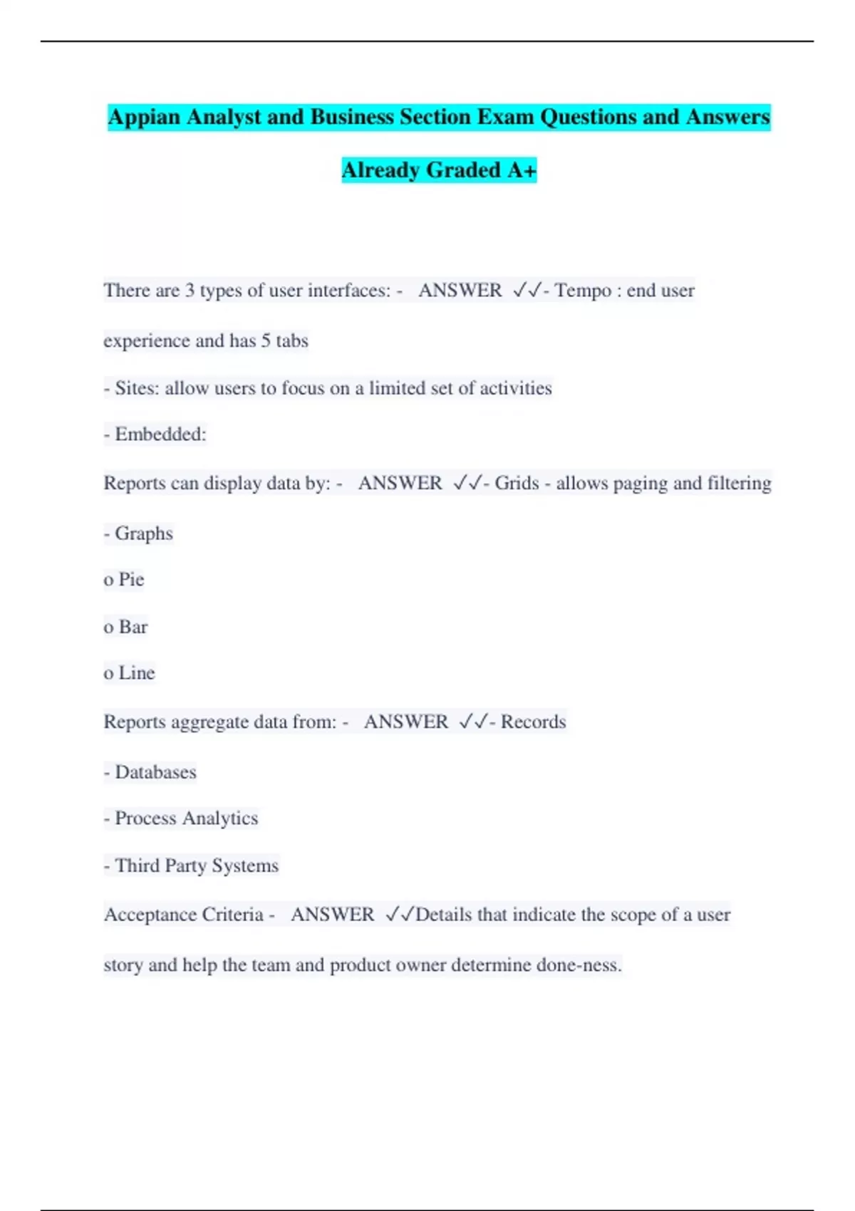 Appian Analyst and Business Section Exam Questions and Answers Already Graded A+
