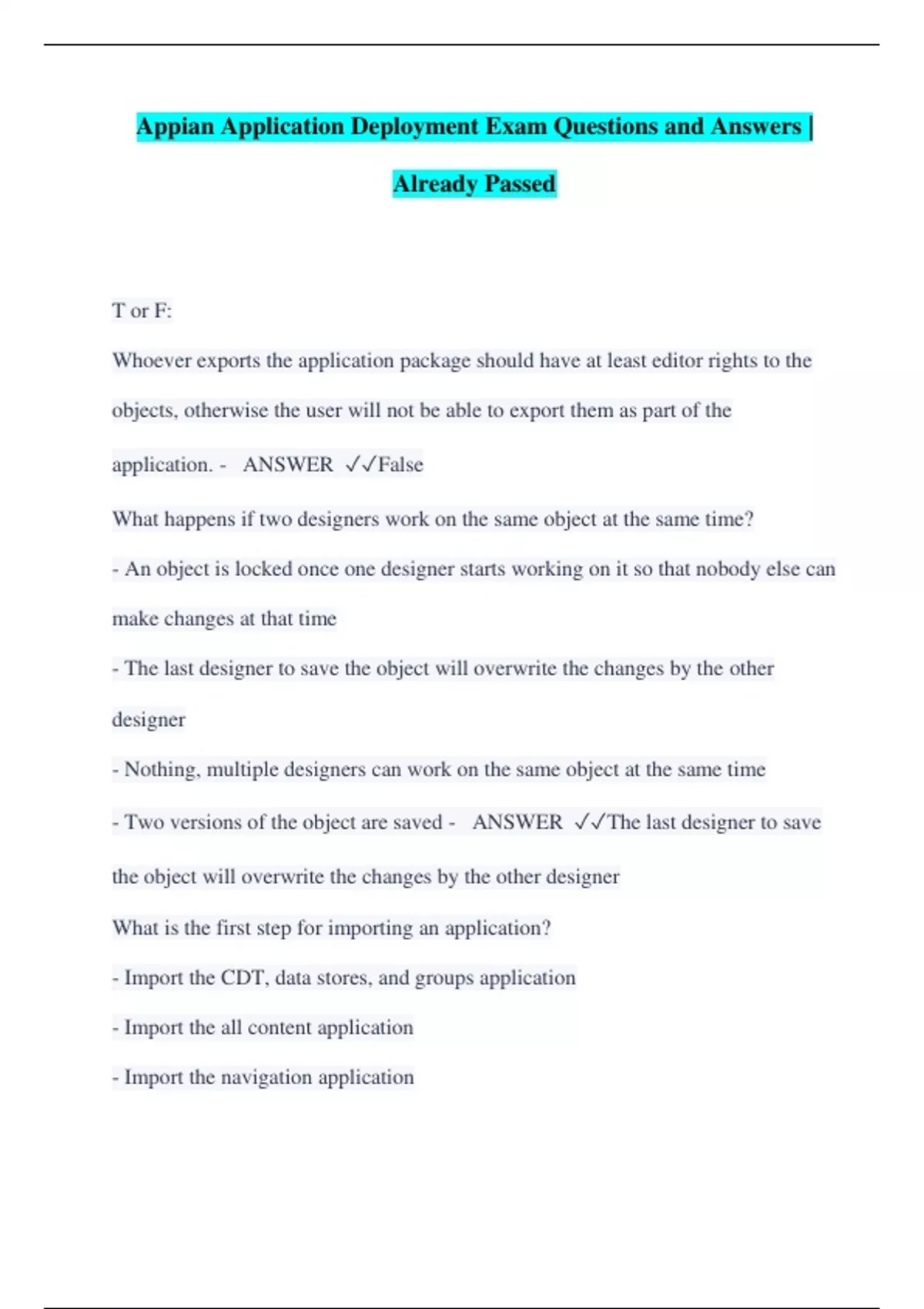Appian Application Deployment Exam Questions and Answers | Already Passed