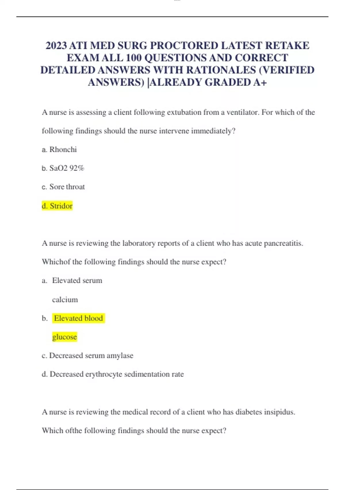2023 ATI MED SURG PROCTORED LATEST RETAKE