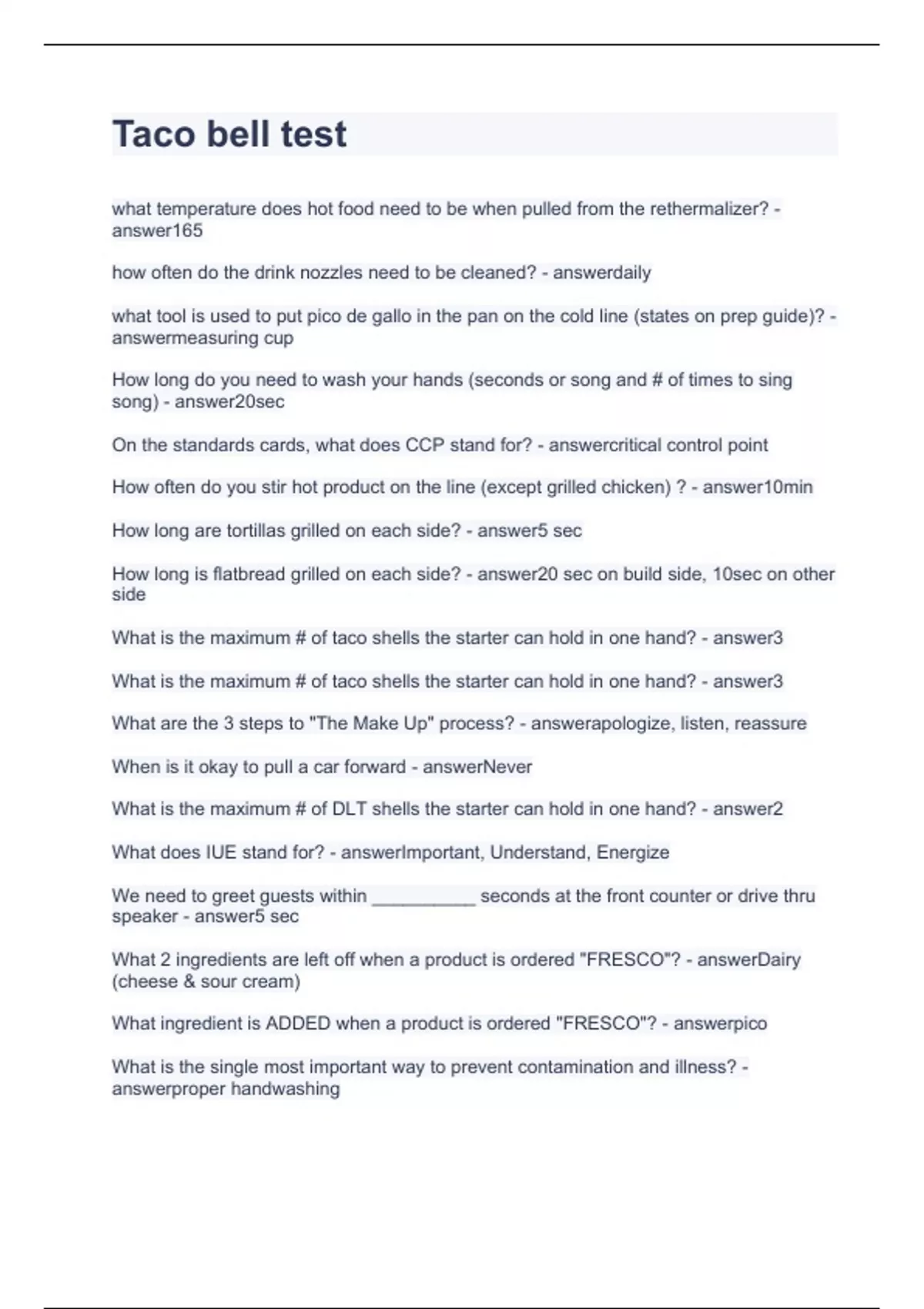Taco bell test 4.Lessons with questions and answers 2023