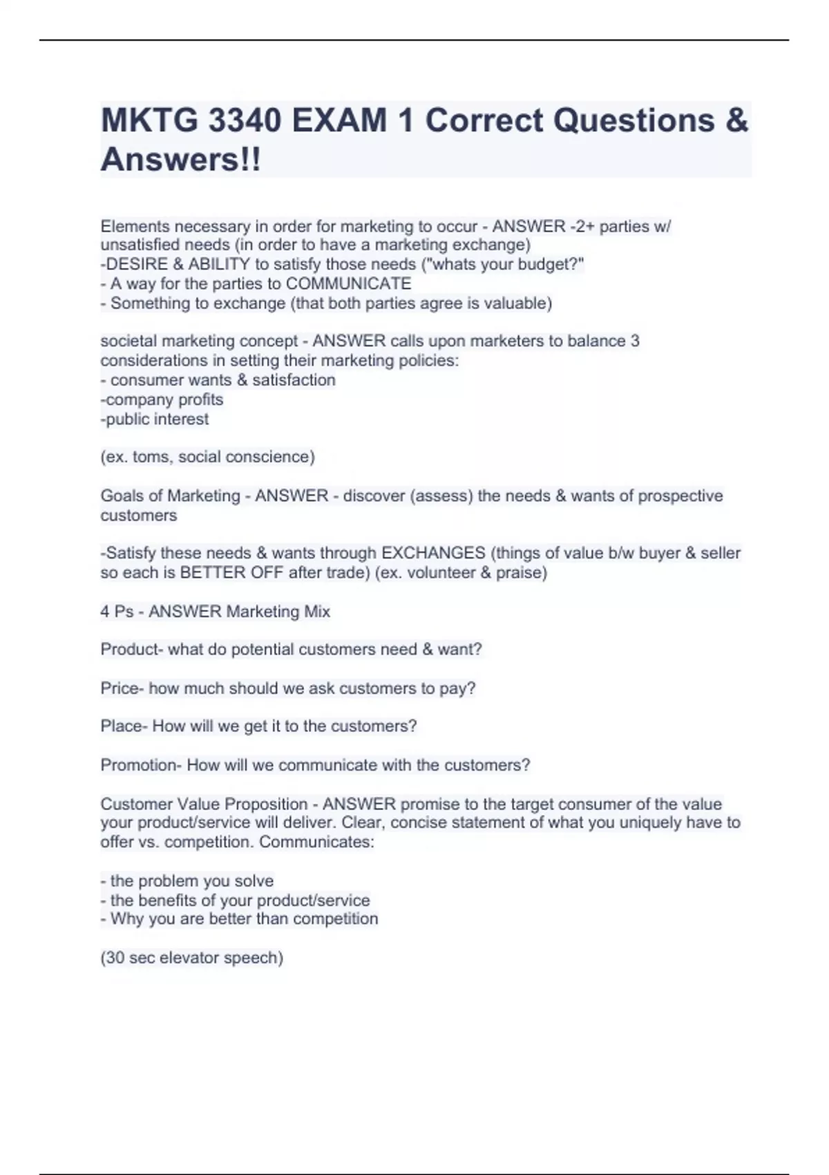 MKTG 3340 EXAM 1 Correct Questions & Answers!!