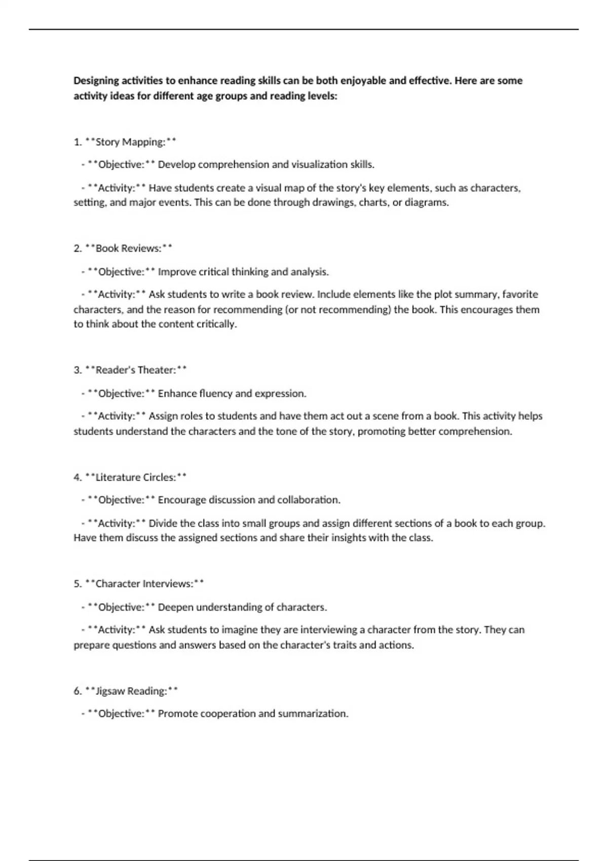 6. **Jigsaw Reading:**