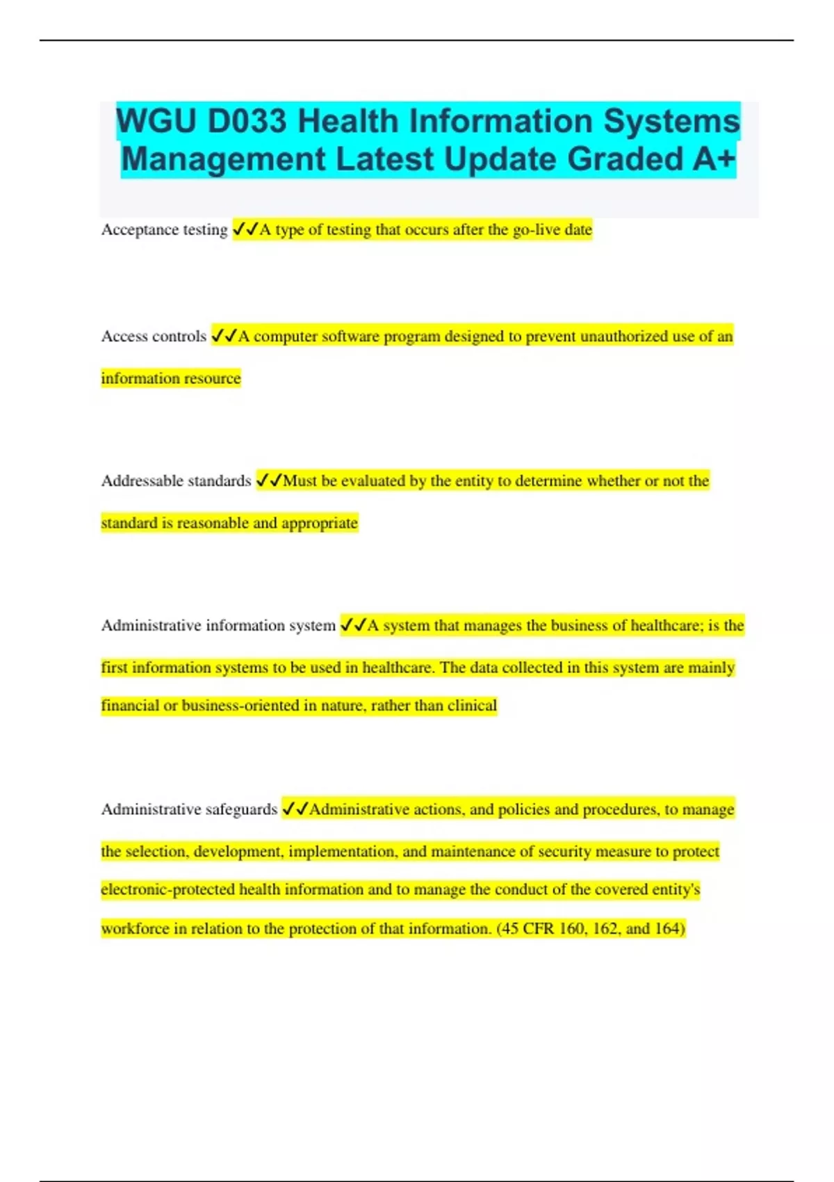 WGU D033 Health Information Systems Management Latest Update Graded A+