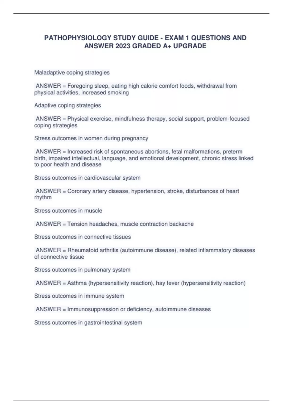 PATHOPHYSIOLOGY STUDY GUIDE - EXAM 1 QUESTIONS AND ANSWER 2023 GRADED A+ UPGRADE