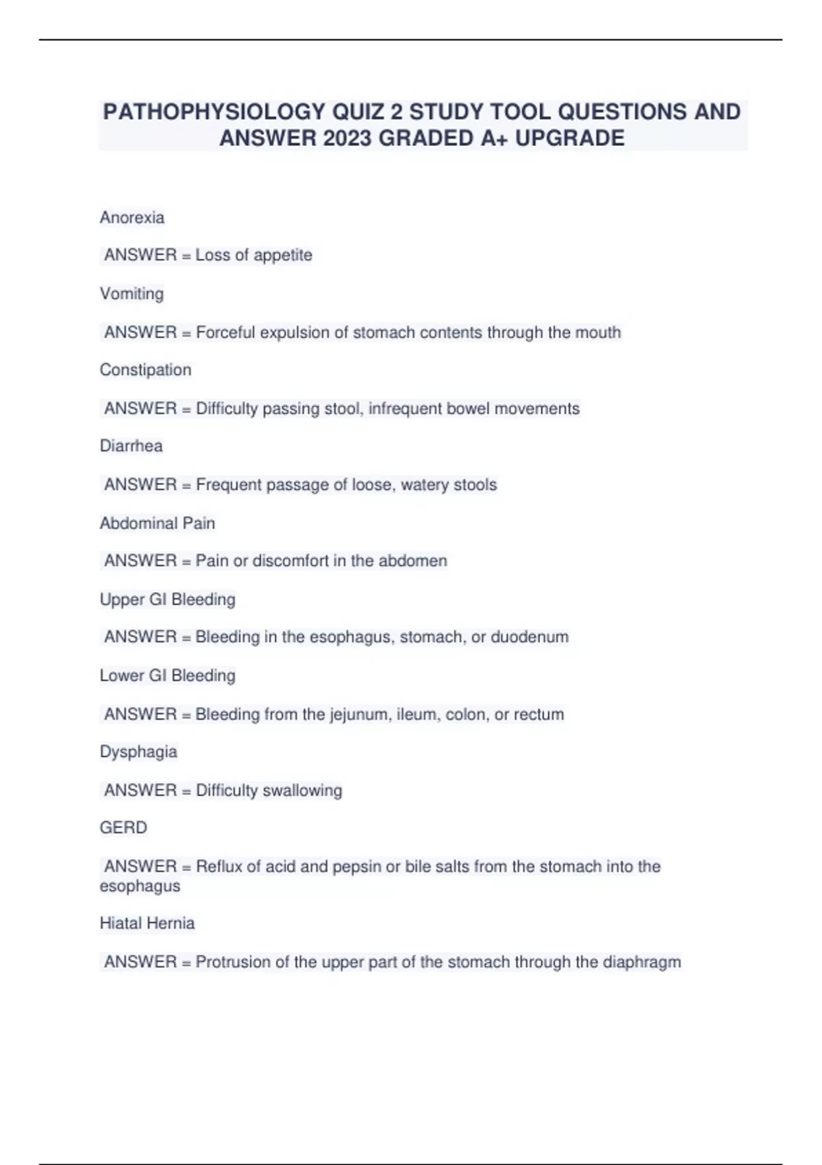 PATHOPHYSIOLOGY QUIZ 2 STUDY TOOL QUESTIONS AND ANSWER 2023 GRADED A+ UPGRADE