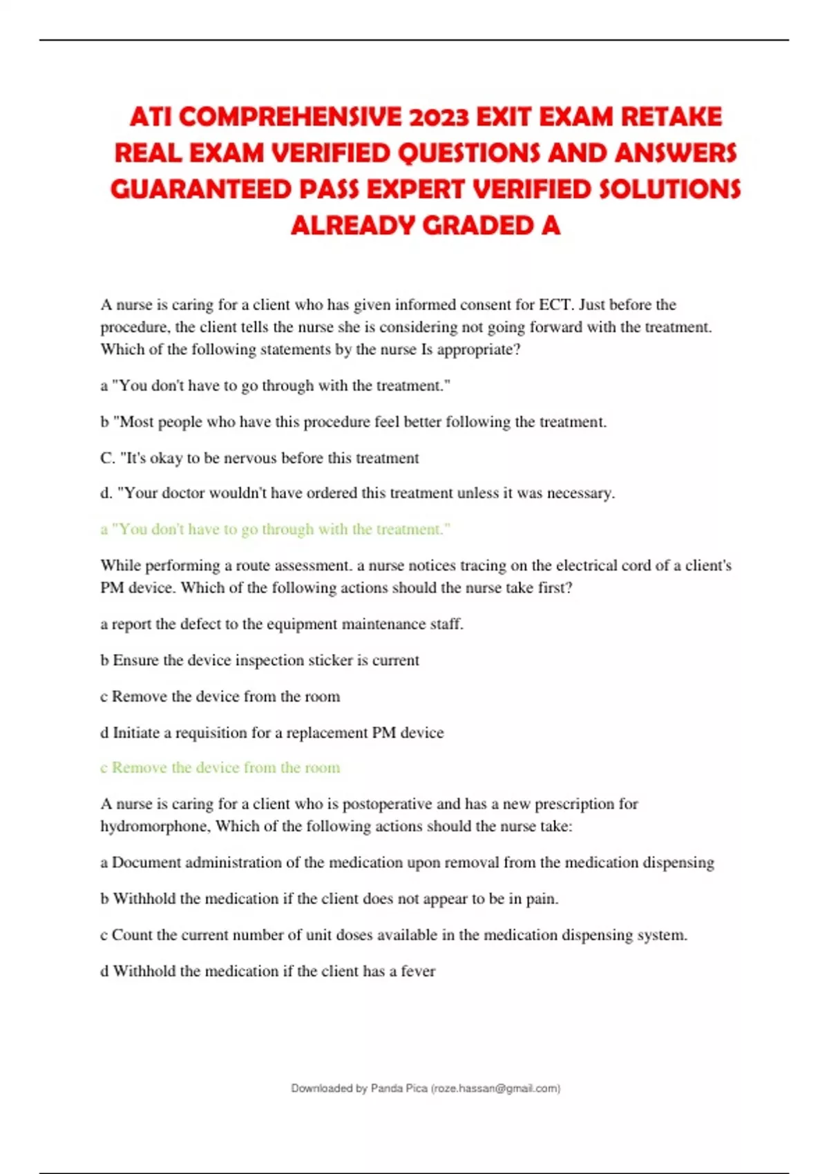 ATI Comprehensive 2023 EXIT EXAM Retake REAL EXAM Verified Questions AND Answers Guaranteed PASS Expert Verified Solutions Already Graded A