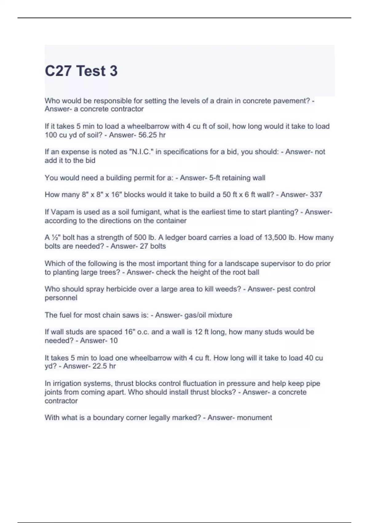 Exam of 7 pages for the course Landscaping C-27 at Landscaping C-27 (C27 Test 3)