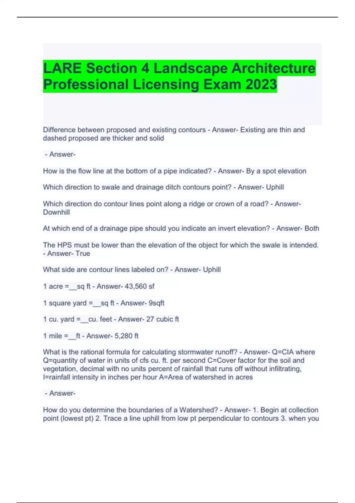 LARE Section 4 Landscape Architecture Professional Licensing Exam 2023.