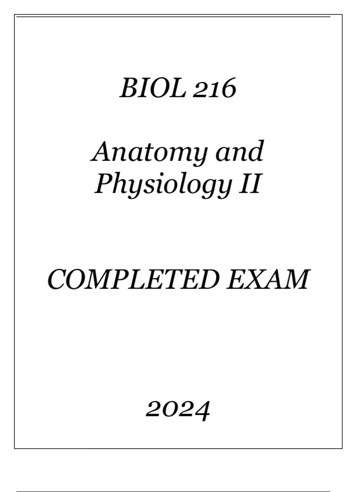 BIOL 216 ANATOMY & PHYSIOLOGY II COMPLETED EXAM 2024