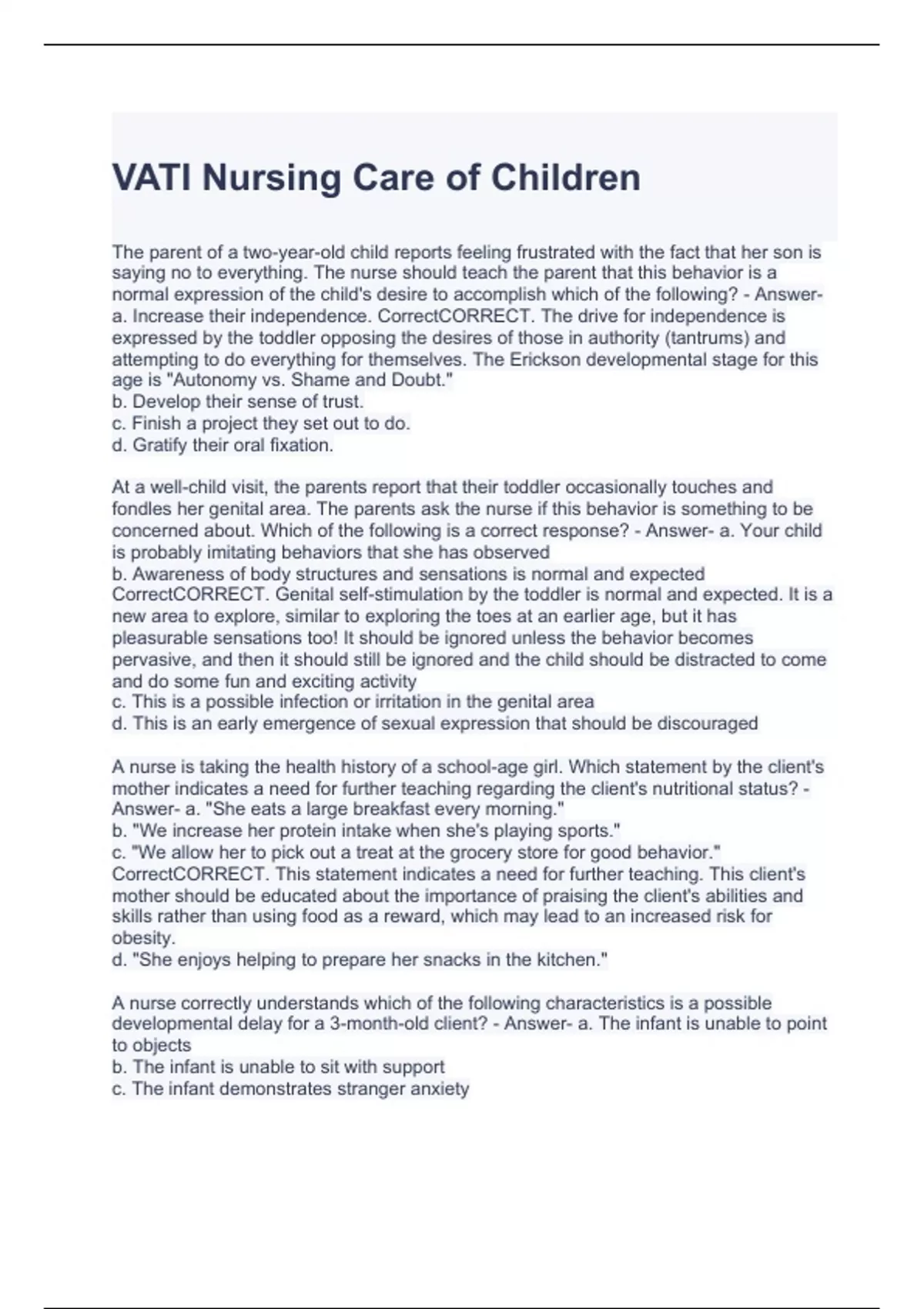 VATI Nursing Care of Children