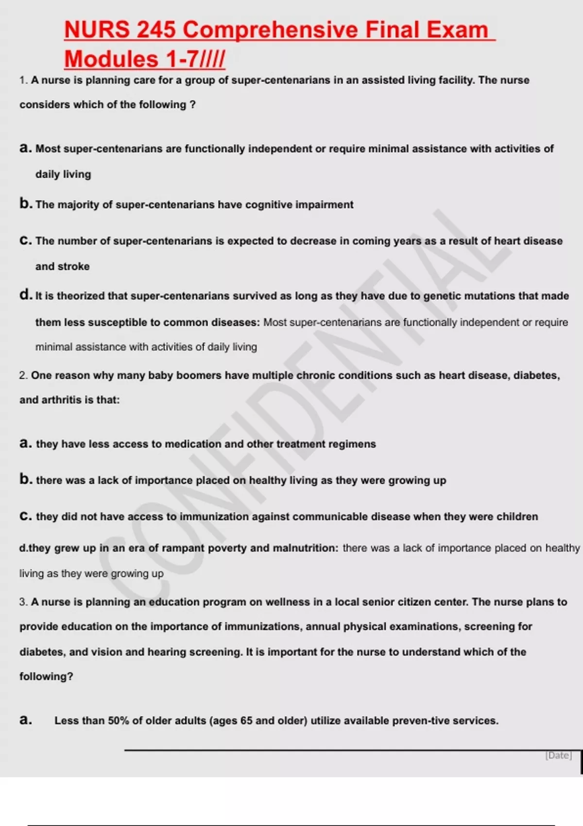NURS 245 Comprehensive Final Exam Modules 1-7NURS 245 Comprehensive Final Exam Modules 1-7NURS 245 Comprehensive Final Exam Modules 1-7////