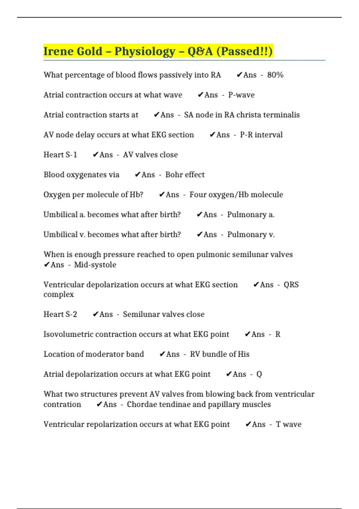 Ventricular repolarization occurs at what EKG point ✔️Ans - T wave