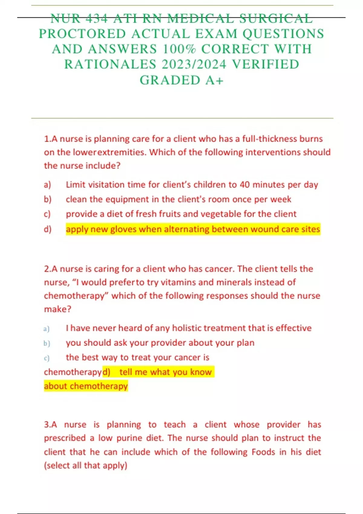NUR 434 ATI RN MEDICAL SURGICAL PROCTORED ACTUAL EXAM QUESTIONS AND ANSWERS 100% CORRECT WITH RATIONALES 2023/2024 VERIFIED GRADED A+NUR 434 ATI RN MEDICAL SURGICAL PROCTORED ACTUAL EXAM QUESTIONS AND ANSWERS 100% CORRECT WITH RATIONALES 2023/2024 VERIFIED GRADED A+NUR 434 ATI RN MEDICAL SURGICAL PROCTORED ACTUAL EXAM QUESTIONS AND ANSWERS 100% CORRECT WITH RATIONALES 2023/2024 VERIFIED GRADED A+NUR 434 ATI RN MEDICAL SURGICAL PROCTORED ACTUAL EXAM QUESTIONS AND ANSWERS 100% CORRECT WITH RATIONALES 2023/2024 VERIFIED GRADED A+