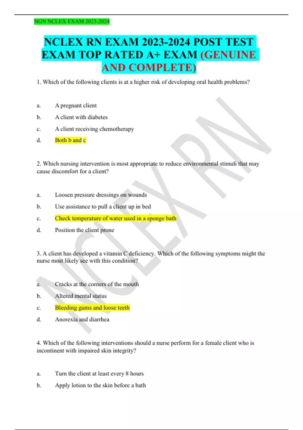 NCLEX RN EXAM POST TEST EXAM TOP RATED A+ EXAM (GENUINE AND COMPLETE)
