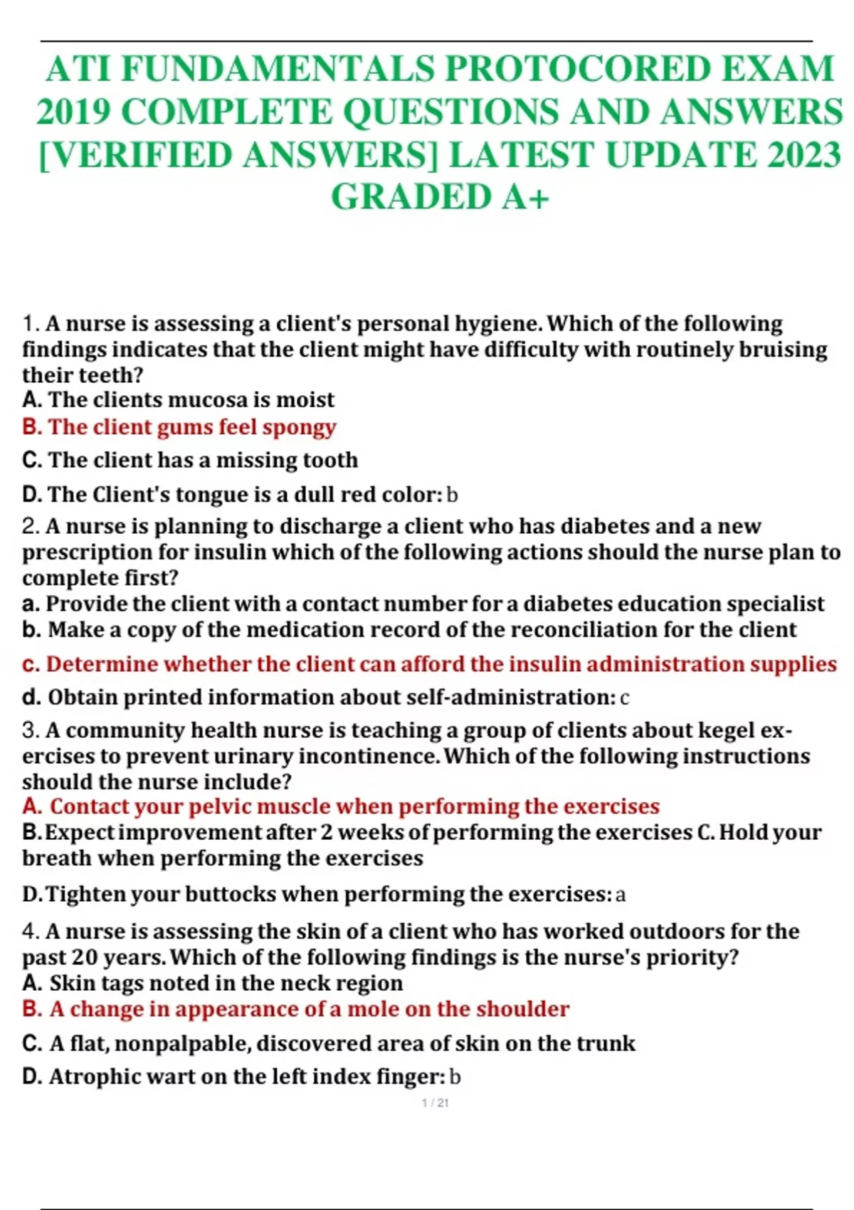 ATI FUNDAMENTALS PROTOCORED EXAM 2019 COMPLETE QUESTIONS AND ANSWERS [VERIFIED ANSWERS] LATEST UPDATE 2023 GRADED A+ ATI FUNDAMENTALS PROTOCORED EXAM 2019 COMPLETE QUESTIONS AND ANSWERS [VERIFIED ANSWERS] LATEST UPDATE 2023 GRADED A+ ATI FUNDAMENTALS PROTOCORED EXAM 2019 COMPLETE QUESTIONS AND ANSWERS [VERIFIED ANSWERS] LATEST UPDATE 2023 GRADED A+ ATI FUNDAMENTALS PROTOCORED EXAM 2019 COMPLETE QUESTIONS AND ANSWERS [VERIFIED ANSWERS] LATEST UPDATE 2023 GRADED A+