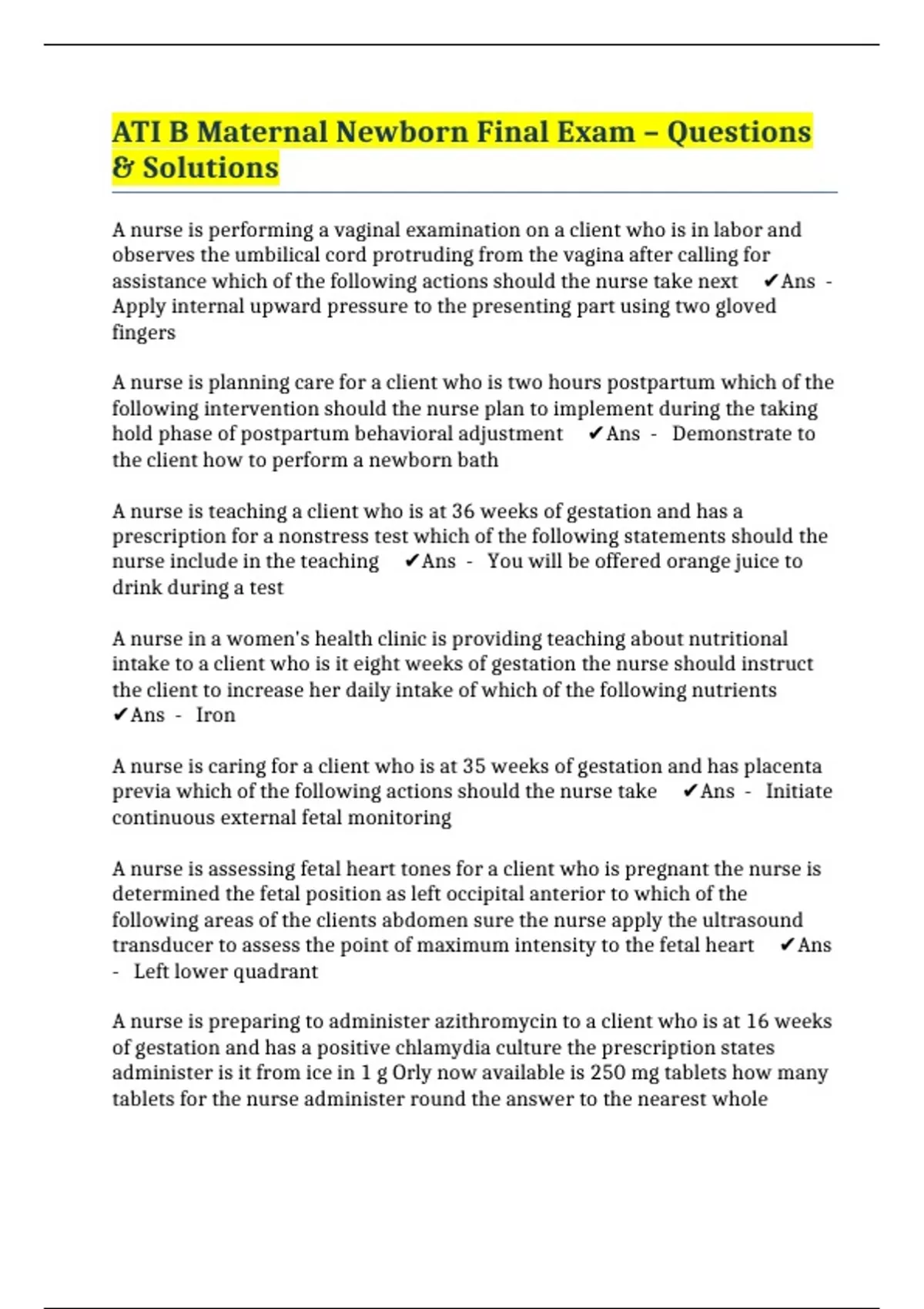 previa which of the following actions should the nurse take ✔️Ans - Initiate