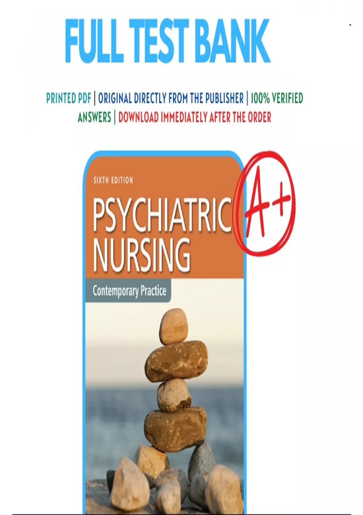 Test Bank For Psychiatric Nursing Contemporary Practice 6th Edition Boyd 9781451192438 | All Chapters with Answers and Rationals . Instant Delivery .