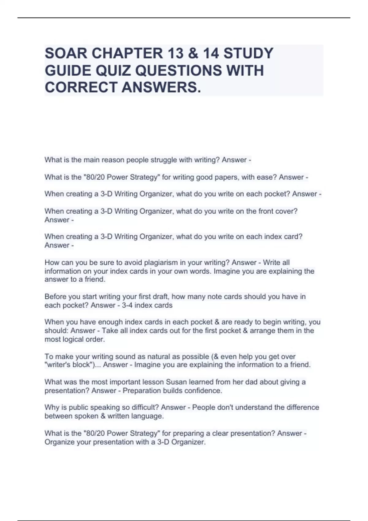 SOAR CHAPTER 13 & 14 STUDY GUIDE QUIZ QUESTIONS WITH CORRECT ANSWERS.