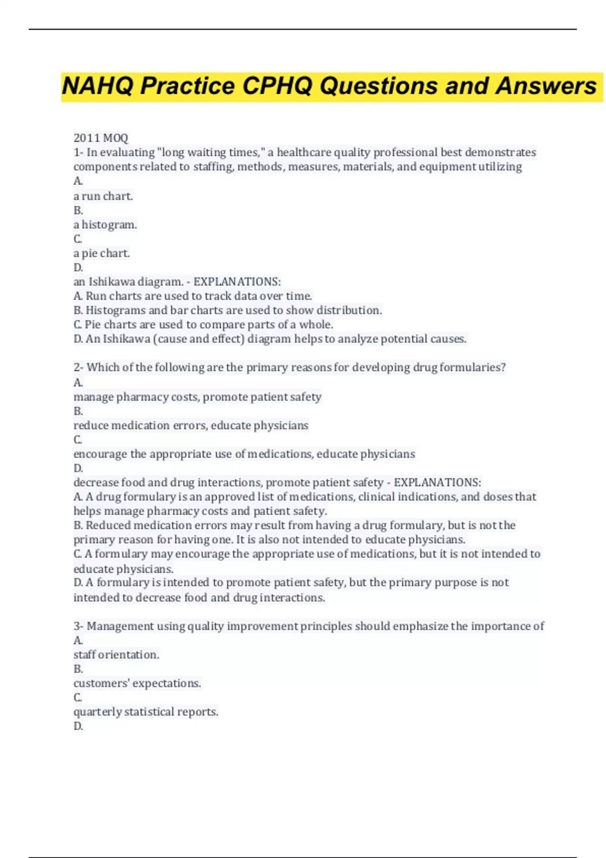 nahq practice cphq questions answers verified