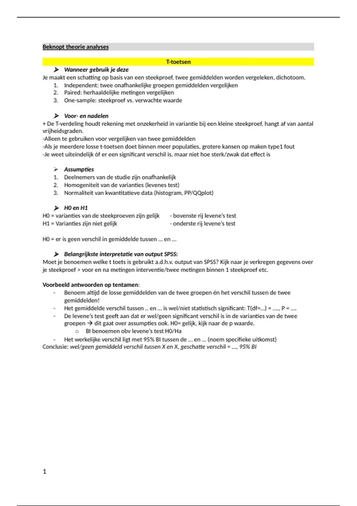 groepen dit gaat over assumpties ook. H0= gelijk, kijk naar de p waarde.