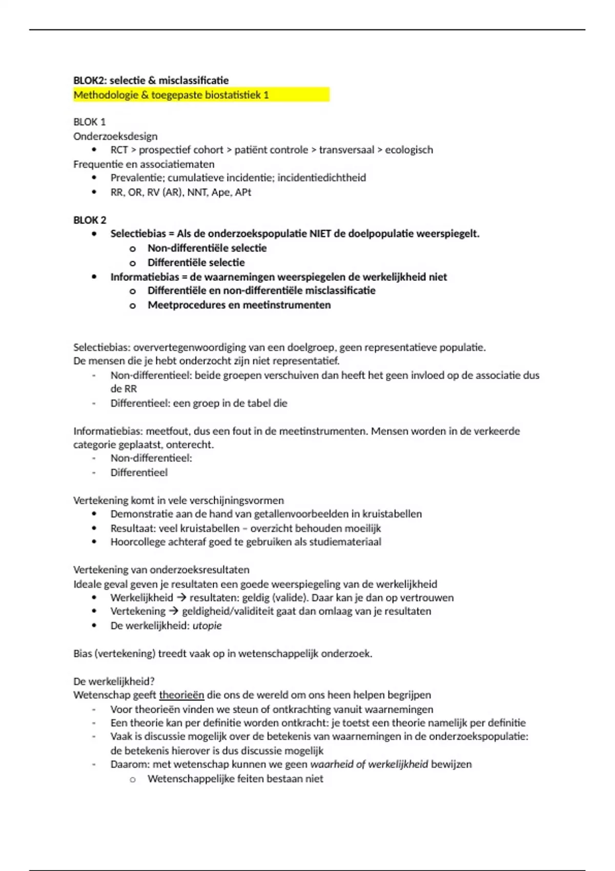 - Non-differentieel: beide groepen verschuiven dan heeft het geen invloed op de associatie dus