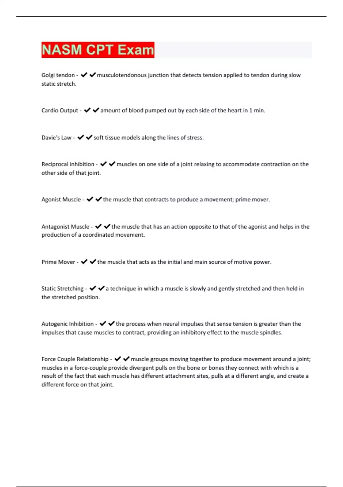 NASM CPT Exam Questions And Answers Already Passed!!