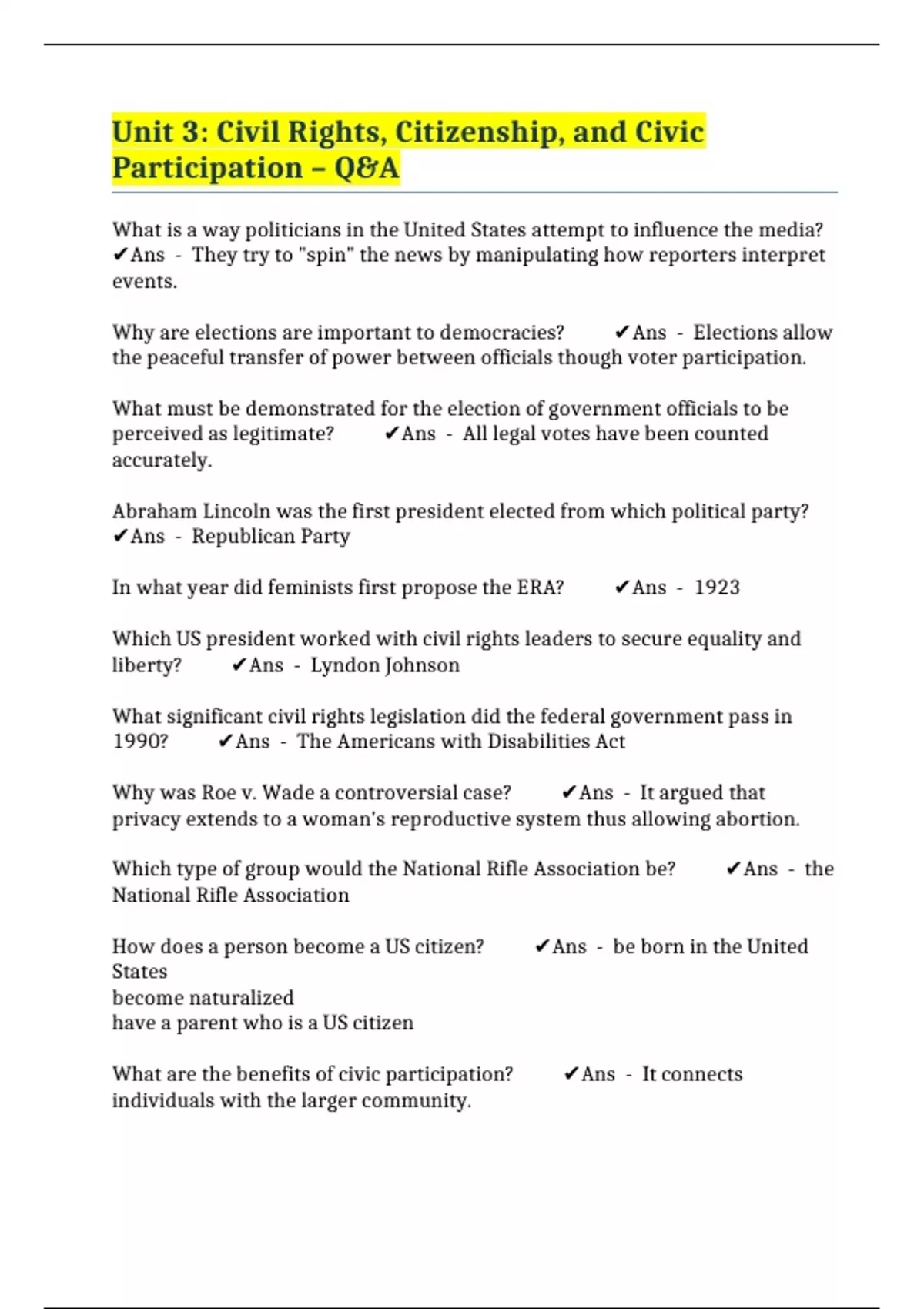 Unit 3: Civil Rights, Citizenship, and Civic Participation – Q&A