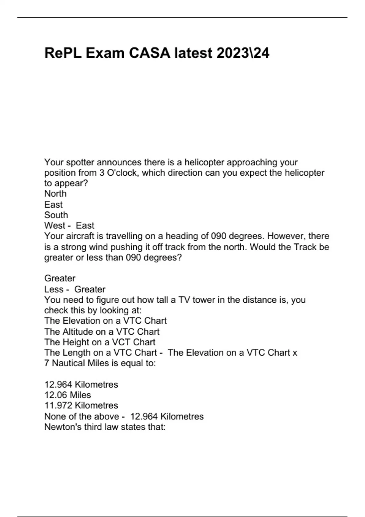 RePL Exam CASA 202324[ Questions and Answers with complete solution