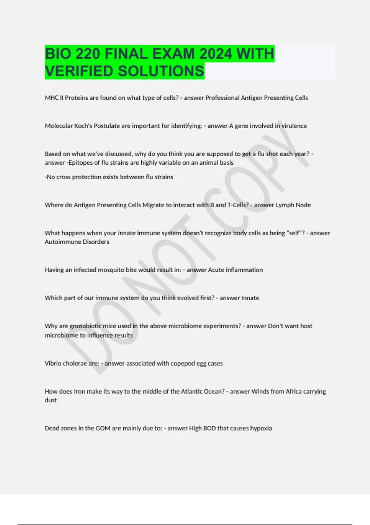 bio 220 final exam 2024 with verified solutions