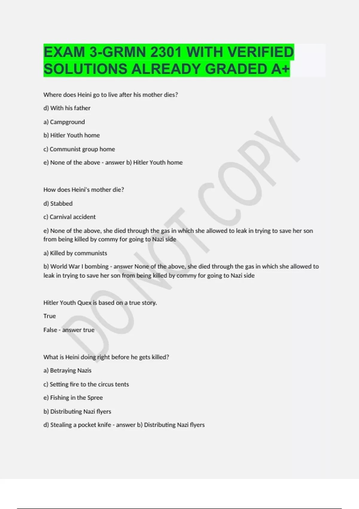 EXAM 3-GRMN 2301 WITH VERIFIED SOLUTIONS ALREADY GRADED A+