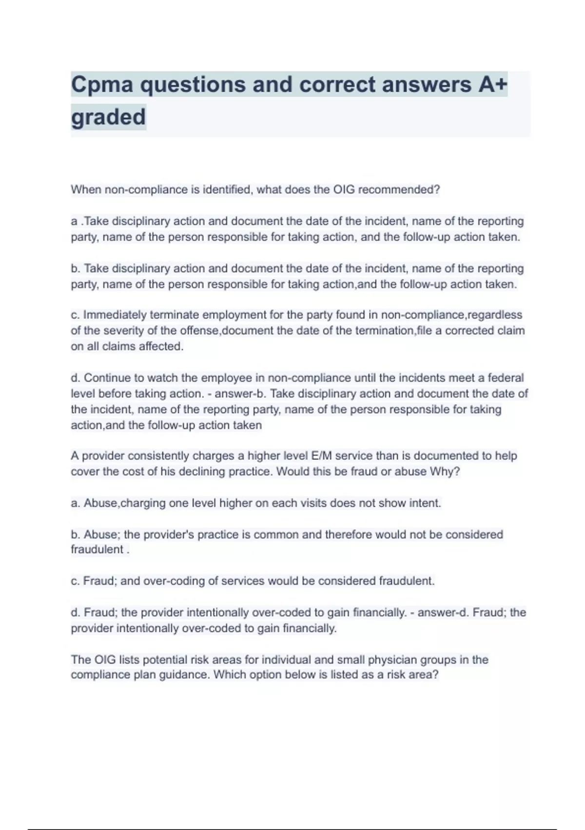 - Cpma qustions and corrct answrs A+ graded