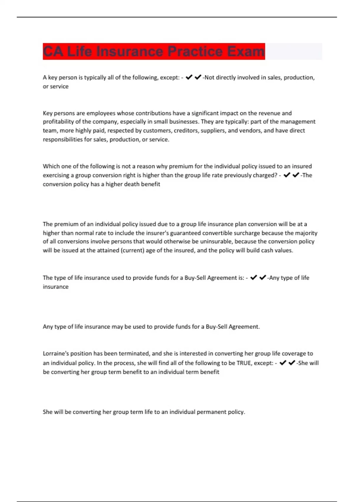 CA Life Insurance Practice Exam Questions With Complete Solutions.
