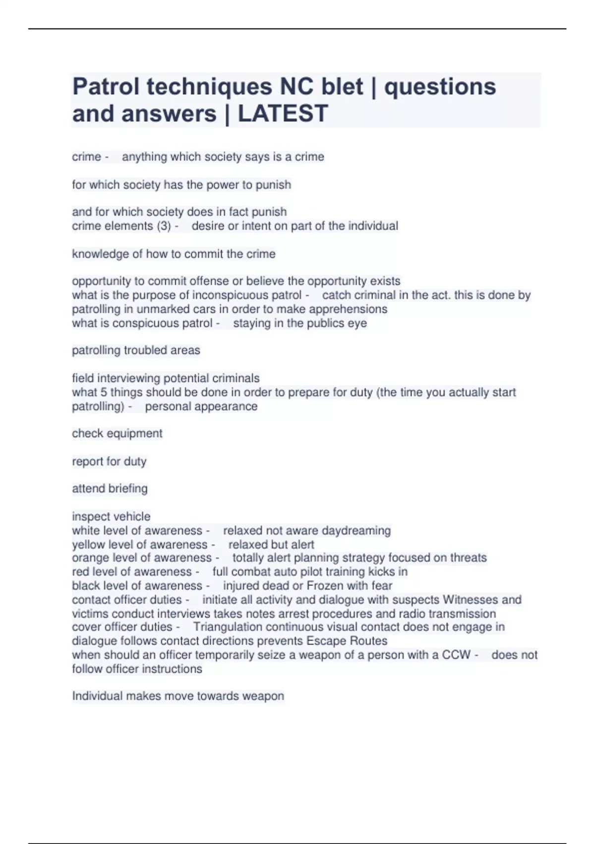 Patrol techniques NC blet | questions and answers | LATEST