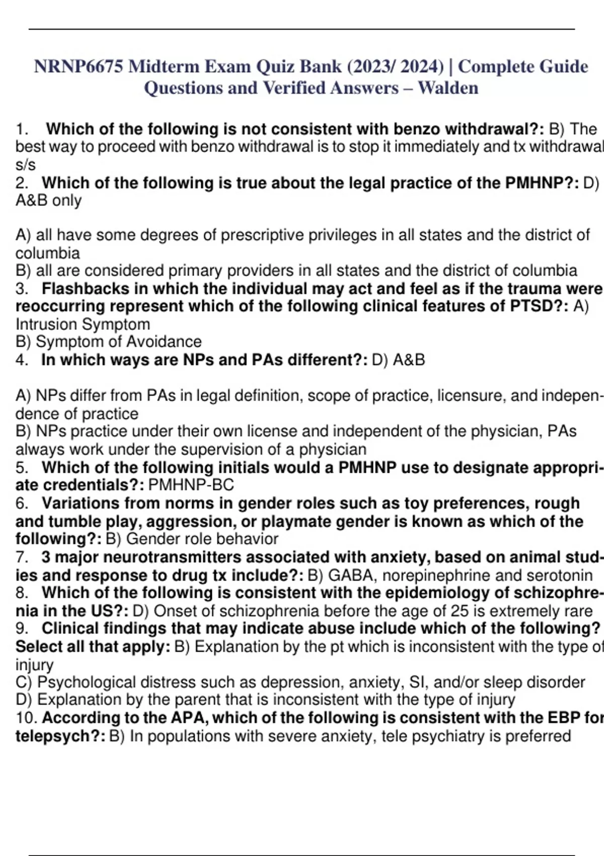 NRNP6675 Midterm Exam Quiz Bank () Complete Guide Questions and Verified Answers