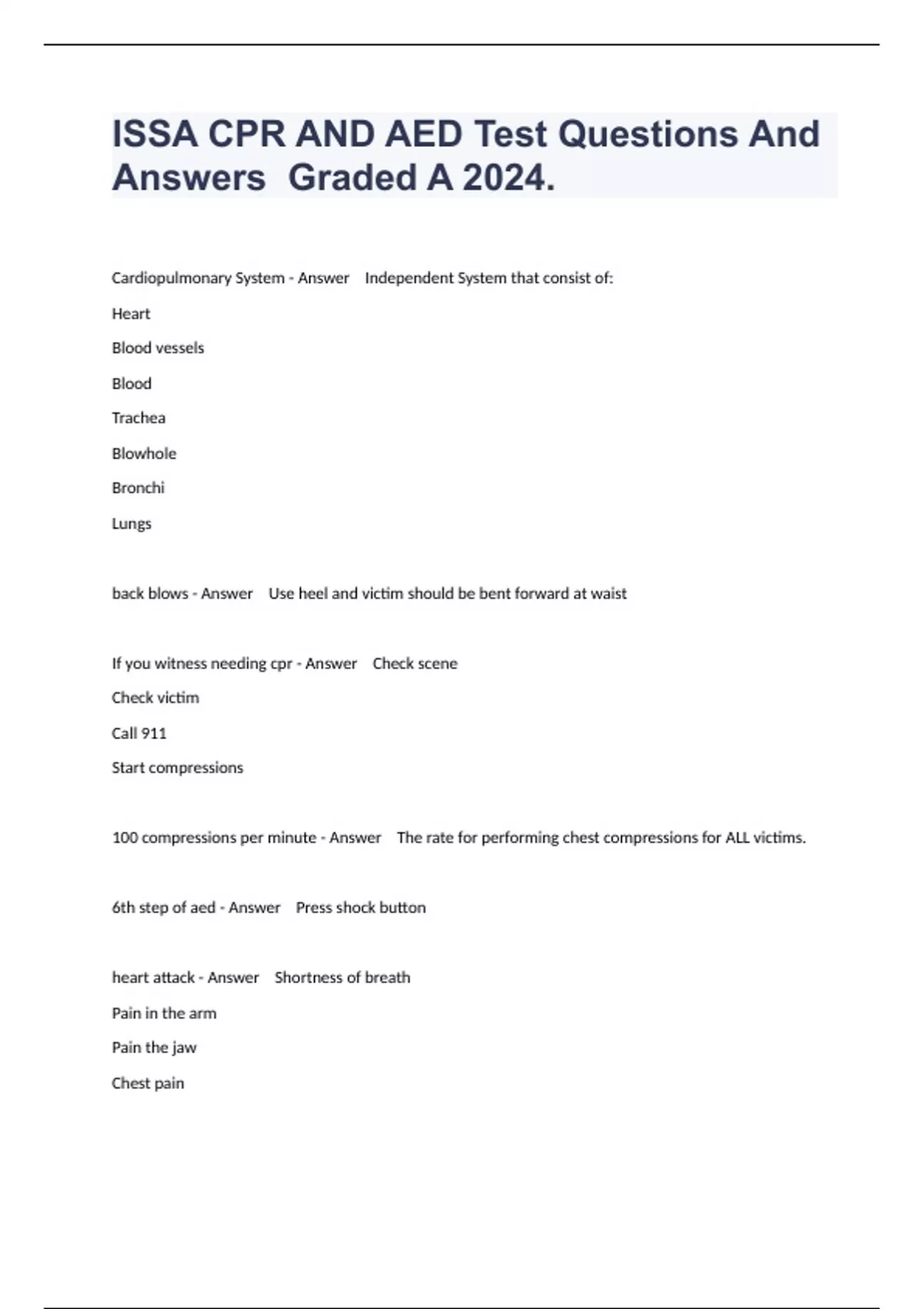 ISSA CPR AND AED Test Questions And Answers Graded A 2024.