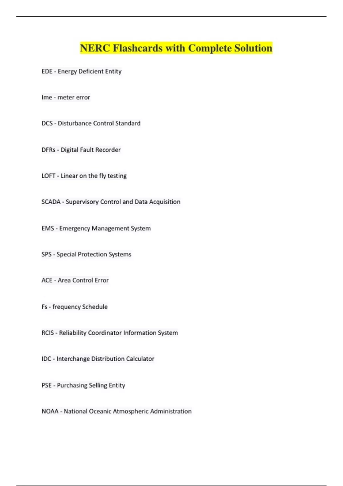 NERC Flashcards with Complete Solution