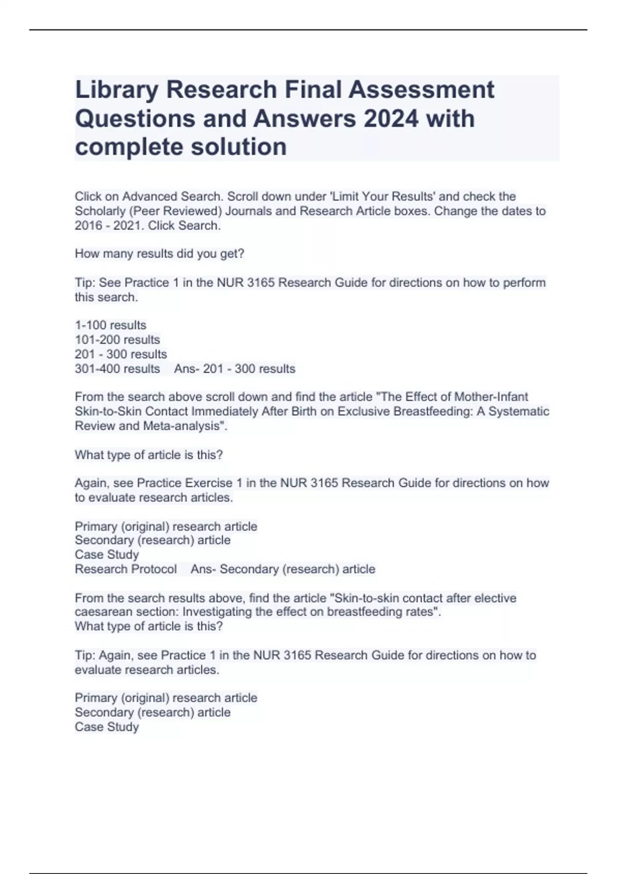 Library Research Final Assessment Questions and Answers 2024 with complete solution