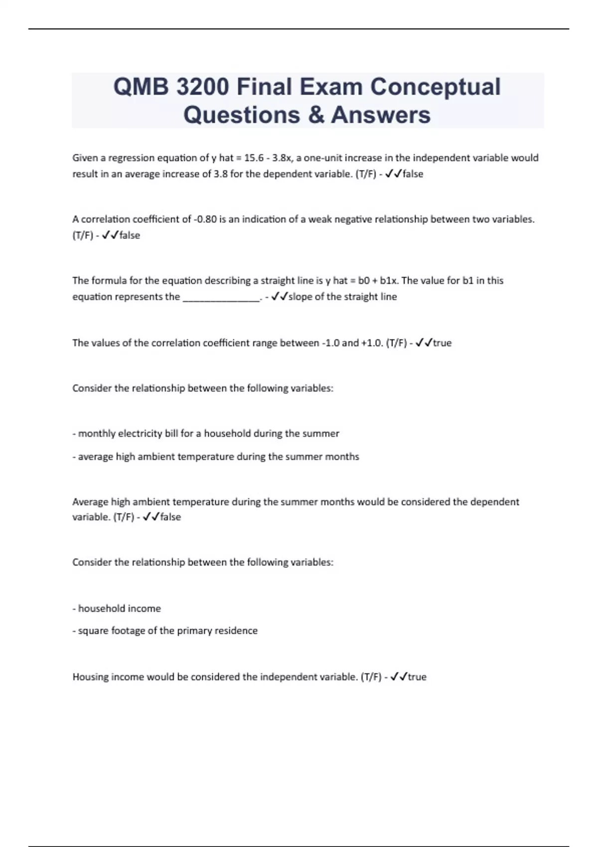 QMB 3200 Final Exam Conceptual Questions & Answers | Verified by Experts 2024