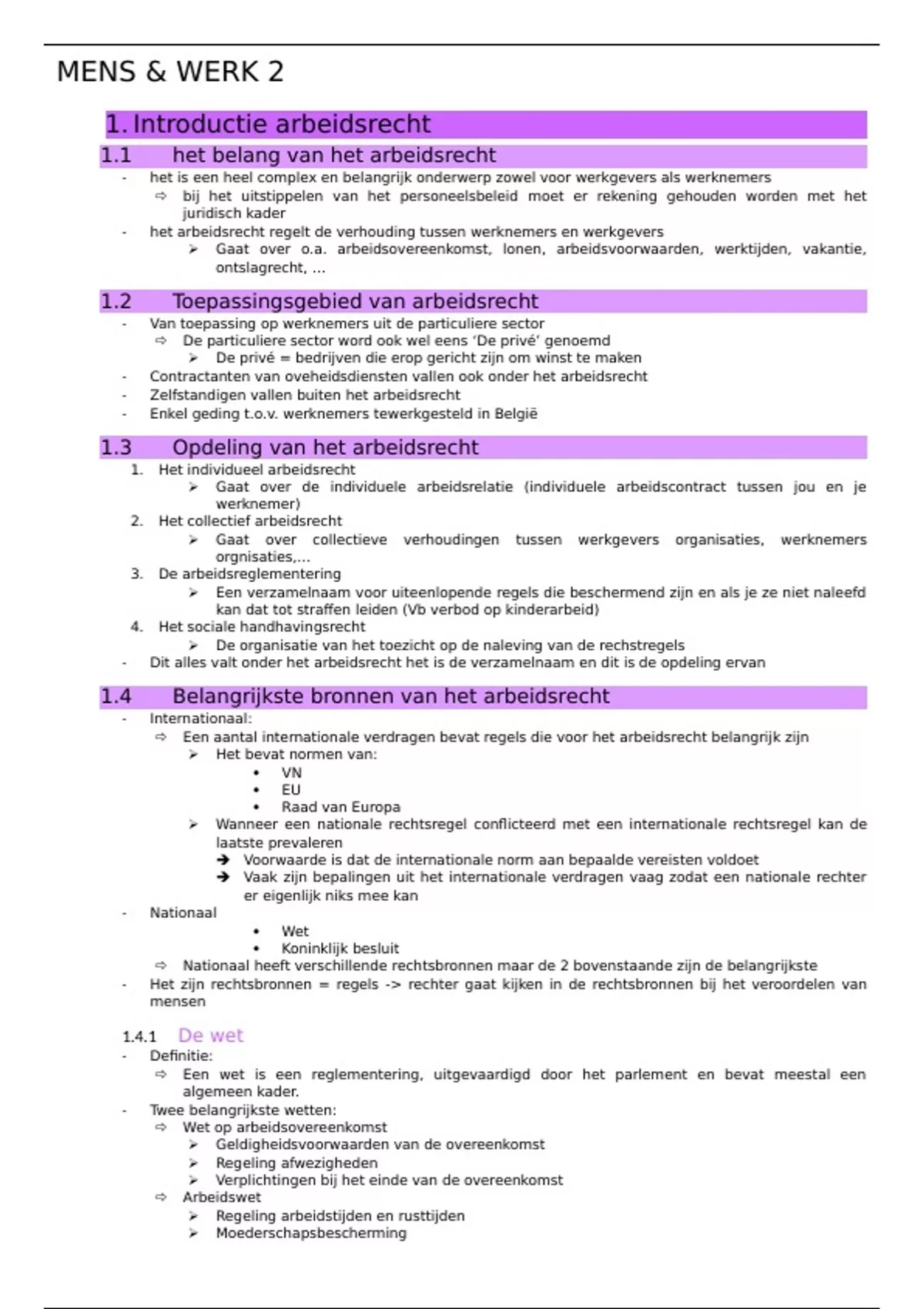 Geskaagd met een 14/20. In deze samenvatting worden alle lessen samen met de reader verwerkt. Er woord vooral de theorie in verwerkt met behulp van de nodig afbeelding/grafieken. De samenvatting bevat geen uitwerking van casussen. De samenvatting betreft het vak mens&werk van het 2e jaar toegepaste psychologie aan de AP hogeschool