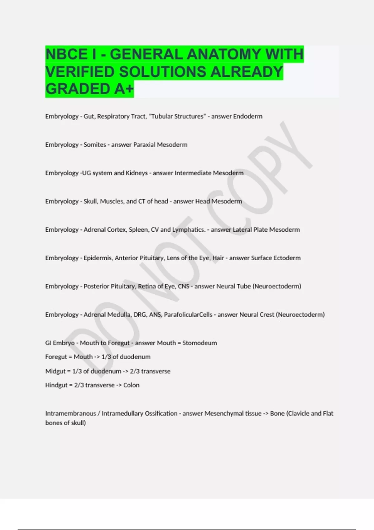 NBCE I - GENERAL ANATOMY WITH VERIFIED SOLUTIONS ALREADY GRADED A+